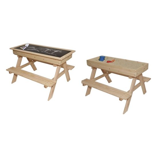 Praktický drevený záhradný set, ktorý sa dá využiť ako stôl, tabuľa na kreslenie a dokonca aj pieskovisko.