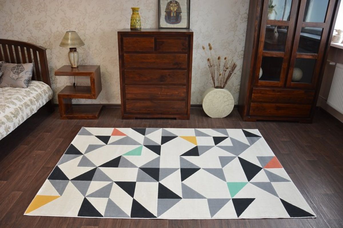 Exkluzivní koberec s vzorem trojúhelníků. V jednoduchosti motivu koberce je síla. Špičkové zpracování a materiál. Koberec je velmi příjemný na dotek, snadno se udržuje. Skvěle se kombinuje s ostatním dětským nábytkem, navíc lze jednoduše přemístit podle potřeby.
