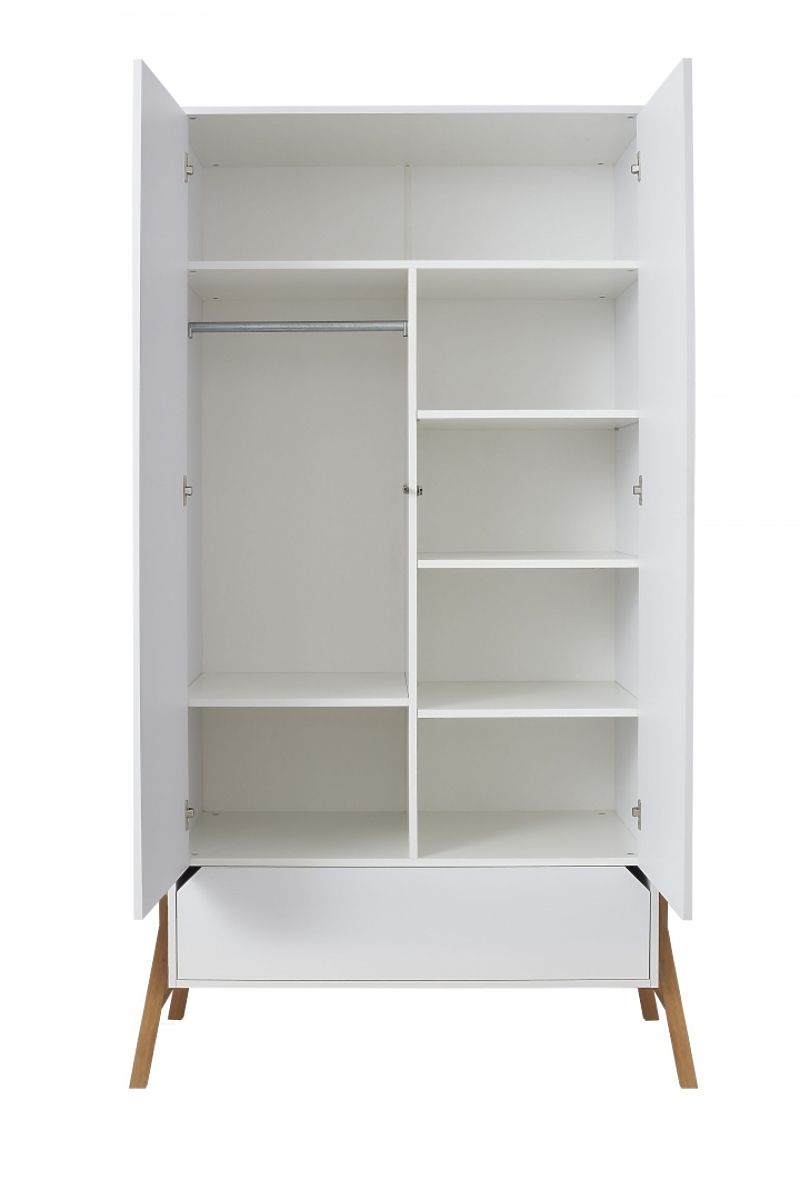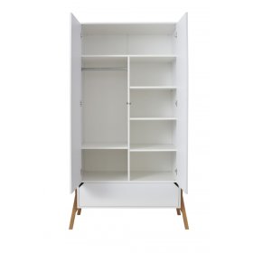 Dvojdverová, priestranná šatníková skriňa je nevyhnutnou súčasťou detskej izby. Skriňa je rozdelená do troch časti: tyč, na ktoré je možné zavesiť oblečenie, veľké úložné police a šuplík.
