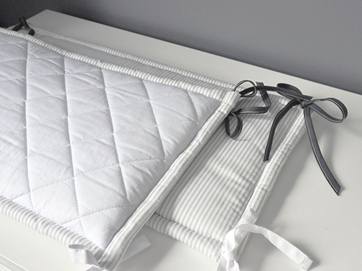 Jedná časť mantinelu je prešívaná, ďalšie dve sú pruhované.