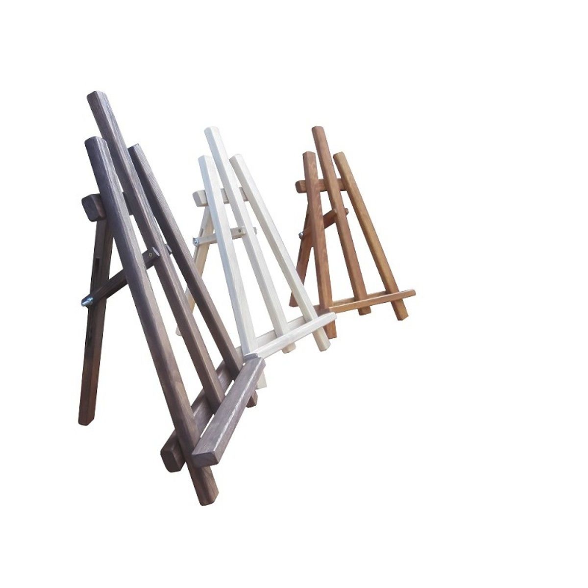 Maliarsky stojan je vysoký 60 cm a k dispozícii je v troch farebných prevedeniach: prírodná, bronz a teak.