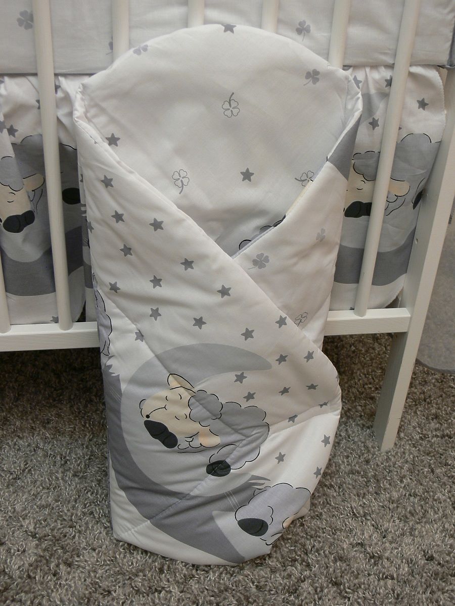 Obliečky sú vyrobené zo 100% bavlny. Výplň zavinovačky je polyester. Dojčiaci vankúš má silikónovú výplň.
