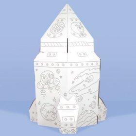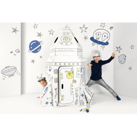 Raketa z 5-vrstvovej vlnitej lepenky s predtlačeným designom, ktorú si deti môžu domaľovať či inak dozdobiť.