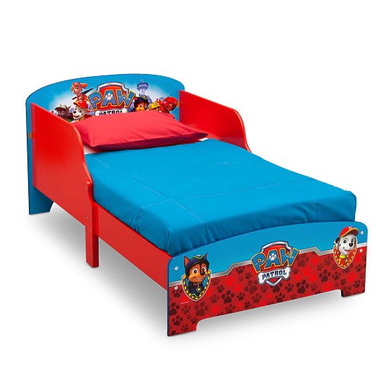 Detská drevená posteľ Tlapková Patrola. Postieľka má pevnú a veľmi silnú a stabilnú konštrukciu s bočnými drevenými zábranami. Celková váha postieľky je 24 kg. Posteľ neobsahuje matrac, nájdete ju v sekcii MATRACE, rozmer 140 x 70 cm.