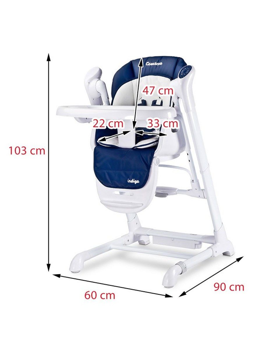 Krásna detská jedálenská stolička 2v1 Caretero Indigo. Ponúka stoličku a hojdačku v jednom sete. Charakteristika:- určená pre deti od 6 mesiacov do približne 3 .. viac