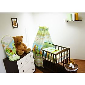 Okraje a rovnako tak i predná strana mantinelov sú hrubšie pre bezpečie vášho dieťaťa. Výplň mantinelov je z antialergického, načechraného vlákna. Baldachýn sa závojom vďaka šírke 230cm a výške 155cm, ideálne sedí do postieľky a vytvára našuchorený efekt.