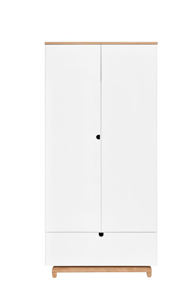 Dvojdverová priestranná šatníková skriňa je rozdelená na dve časti: vešiak a veľké police. Skriňa je doplnená zásuvkou, ktorá je samostatnou jednotkou pod skriňou.