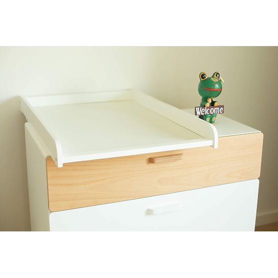 Poznámka: Keď je prebalovacia podložka umiestnená na komode, prechádza za predný a zadný okraj. Dĺžka prekrytia závisí od hĺbky komody.