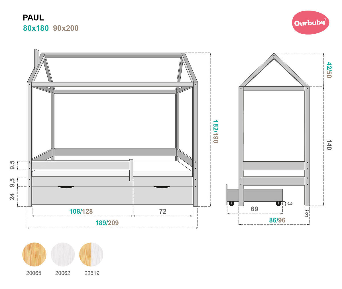 | Prevedenie posteľe: | so zábranou, s domčekom, s úložným priestorom, bez potlače |