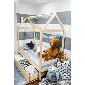 Detská posteľ domček Paul prírodnej farby vyrobená z borovicového dreva. Zaistí miesto pre spokojný spánok a zároveň tiež miesto pre hranie. Domček je možné ozdobiť rôznymi svietidlami, alebo si z neho deti môžu urobiť jednoducho bunker. Detská posteľ obsahuje drevený rošt.