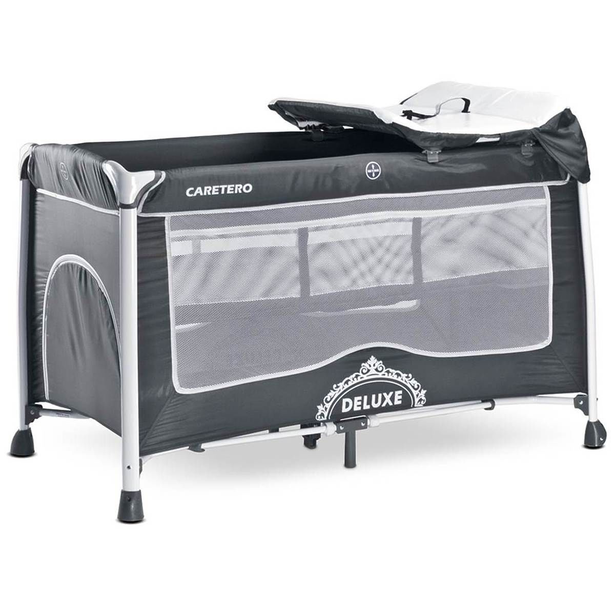Babynabytek.sk » Detský nábytok / Postieľky / Cestovné postieľky / Cestovná postieľka CARETERO Deluxe graphite Sivá