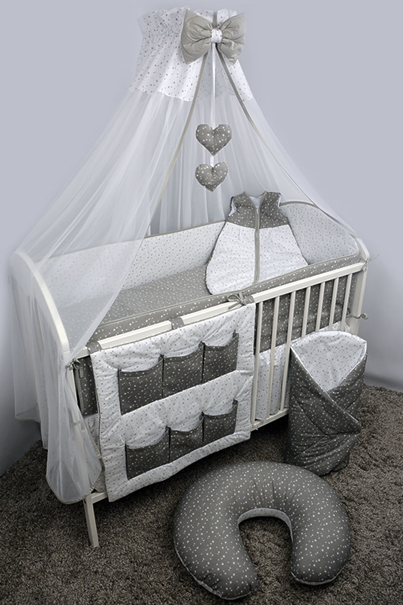 Krásny set obliečok do detskej postieľky pripomínajúcej nočnú oblohu s tisíckami drobnými hviezdičiek. Nádherné súhvezdie s ktorým budú mať všetky deti krásne sny.