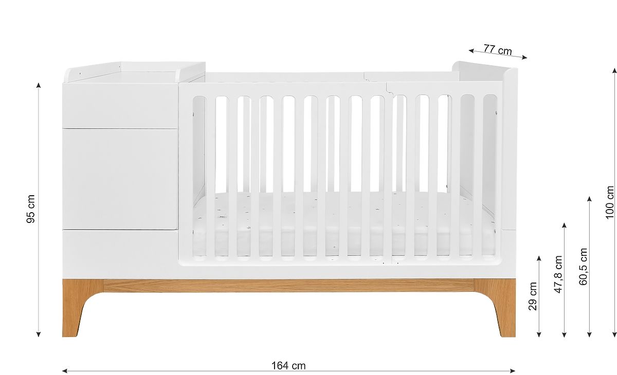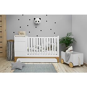 Jedinečná multifunkčná a rastúca postieľka, ktorá poslúži vášmu dieťaťu až do 10 rokov! Kombinácia bielej farby a detailu v podobe dubového dekoru vytvára veľmi príjemný a svieži dojem.