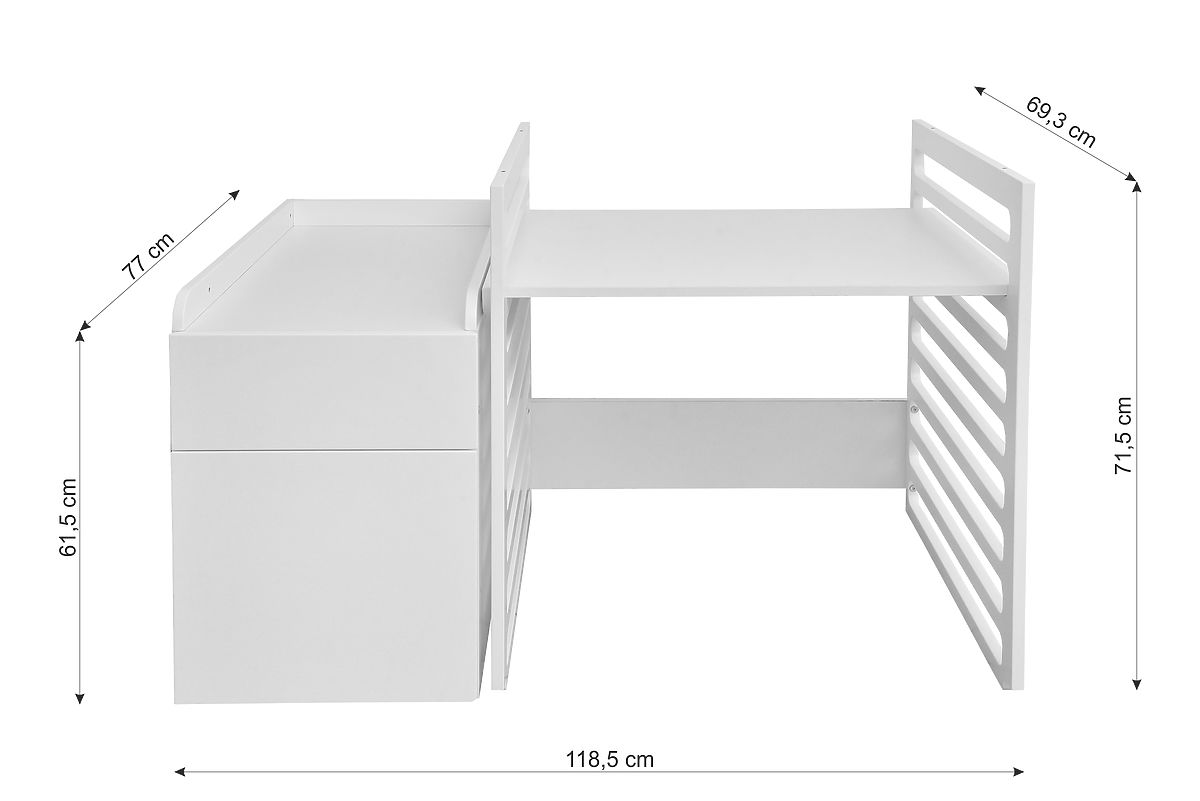 - po prestavbe na posteľ 160x70 cm, je možné zo zvyšných častí zložiť písací stôl s reguláciou výšky a kontajnerom