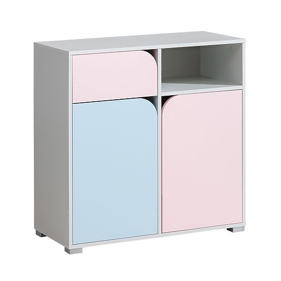 Priestranná kombinovaná komoda z kolekcie nábytku pre bábätko Mimo vo svetlých farbách (šedá, modrá a ružová) zabezpečí, že detská izba bude vždy uprataná a .. viac