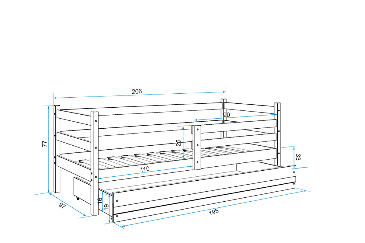 | Prevedenie posteľe: | so zábranou, s úložným priestorom, s matracom a roštom, s matracom, s roštom, bez potlače |