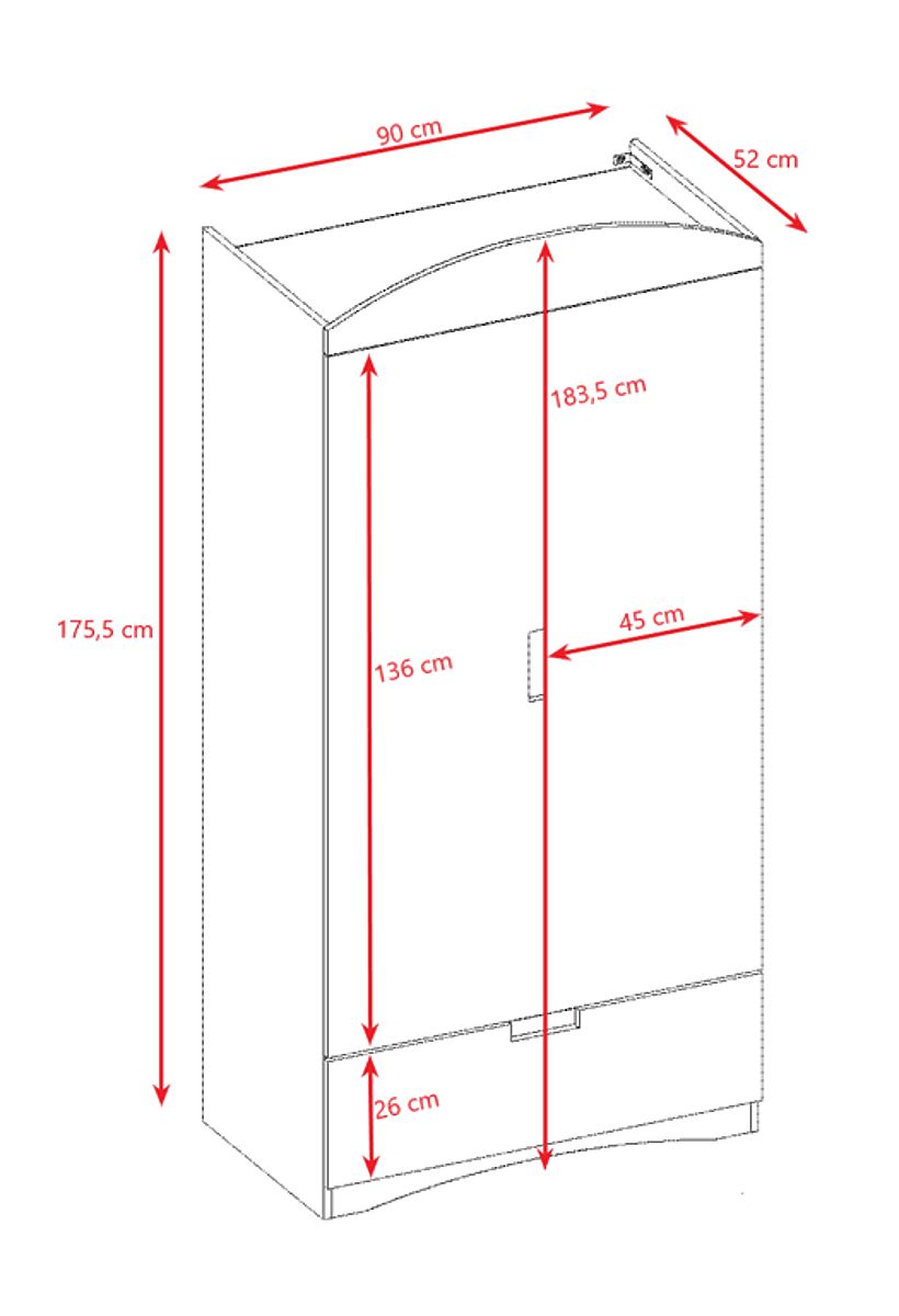 - v jednej časti je umiestnená šatníková tyč a v druhej 4 police