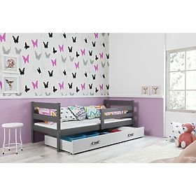 Jednoduchá šedo-biela posteľ Erik do detskej izby s zásuvkou a bezpečnostnou zábranou. vlastnosti: - zábrana je univerzálny, pri montáži si určíte, na ktorú .. viac