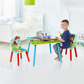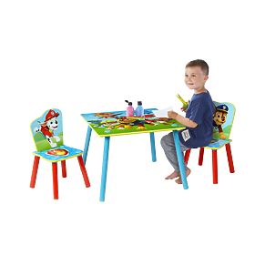 Skvelý set do detskej izby. Licenčný detský farebný drevený stôl so stoličkami tlapková patrola poteší všetkých malých milovníkov tejto rozprávky.