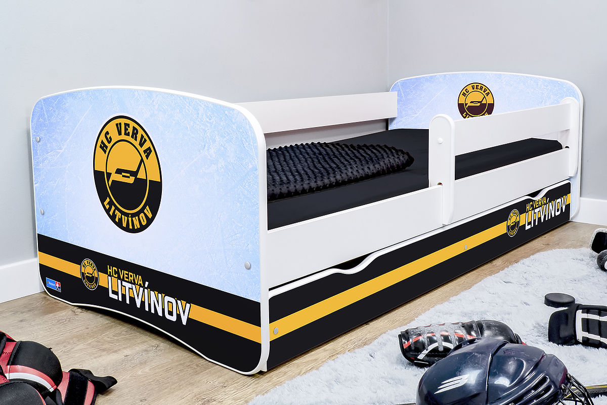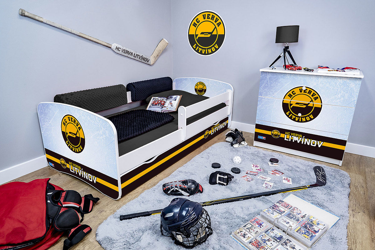 Hokejový izbičku v čierno-žltých farbách klubu HC Litvínov, poteší srdce najvernejšieho fanúšika nech je malý alebo veľký. Doprajte svojmu dieťaťu hokejovej prostredie v jeho vlastnom izbe. Dieťa tak môže zaspávať a prebúdzať sa do každého dňa s pocitom najvernejšieho fanúšika svojho klubu.