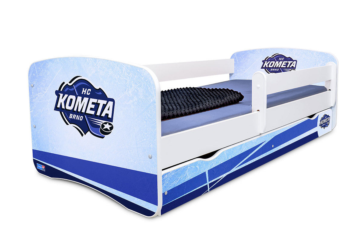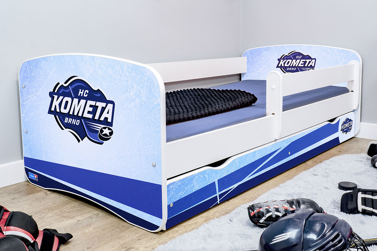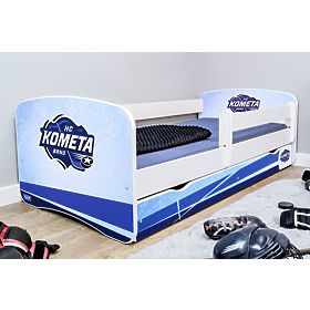 Detská posteľ s modro-bielym logom hokejového klubu HC Kometa Brno nesmie chýbať v detskej izbe oddaného fanatikov. Doprajte svojmu dieťaťu zaspávanie aj prebúdzanie s pocitom najvernejšieho fanúšika.