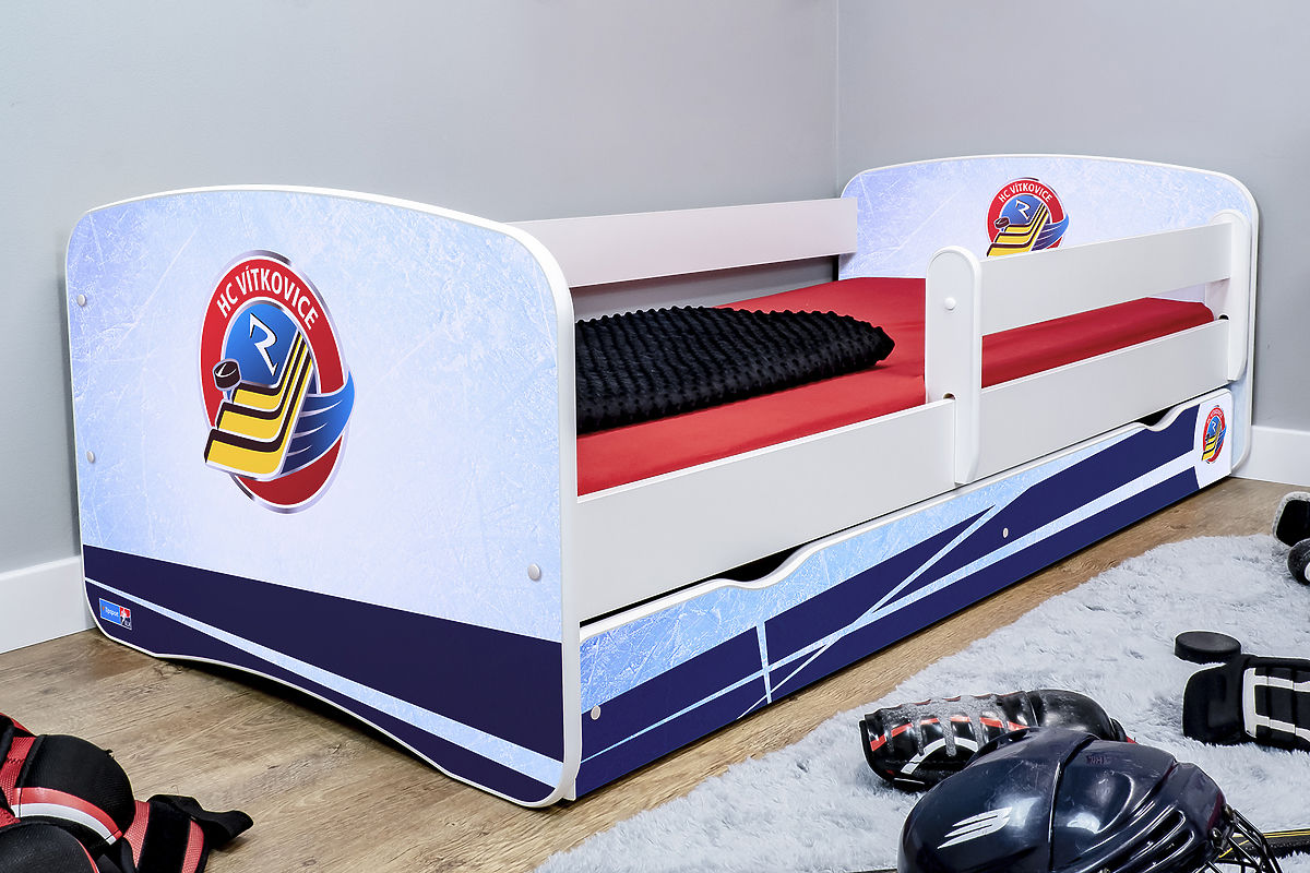 Detská posteľ s červeno-modro-žltým logom hokejového klubu HC VÍTKOVICE ridera nesmie chýbať v detskej izbe oddaného fanatikov. Doprajte svojmu dieťaťu zaspávanie aj prebúdzanie s pocitom najvernejšieho fanúšika.