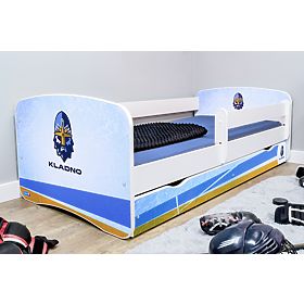 Detská posteľ s žlto-modro-bielym logom hokejového klubu HC Rytíři Kladno nesmie chýbať v detskej izbe oddaného fanatikov. Doprajte svojmu dieťaťu zaspávanie aj prebúdzanie s pocitom najvernejšieho fanúšika.