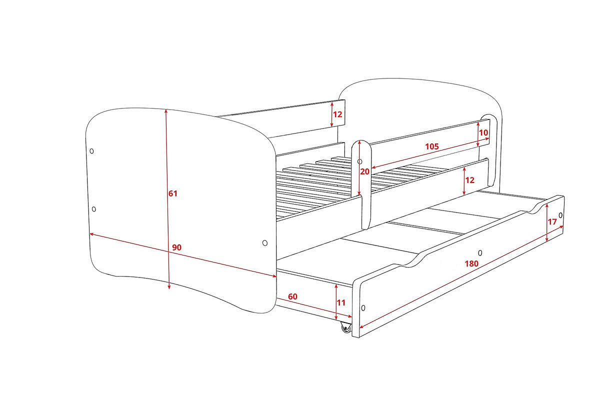 - balenie obsahuje posteľ, zábranu (vhodná pre ľavú i pravú stranu) a rošt.
