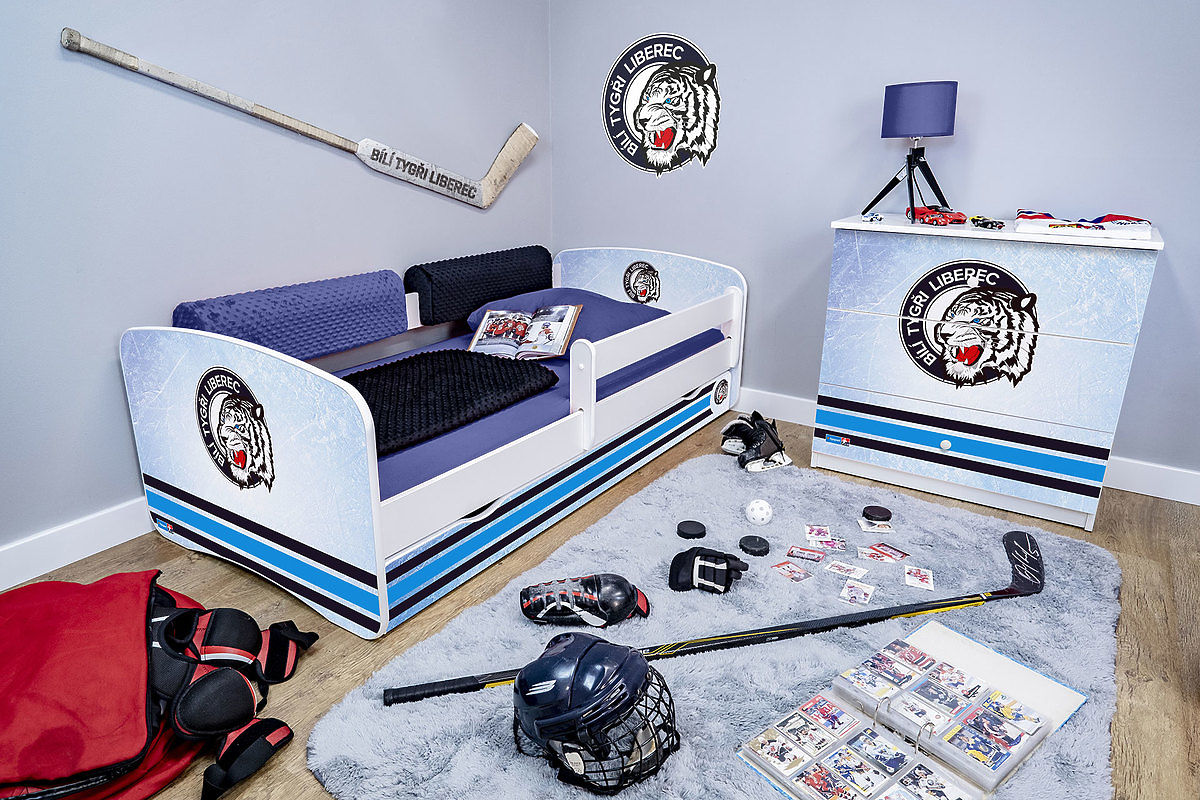 Hokejový izbičku v modro-bielych farbách klubu Bílí Tygři Liberec, poteší srdce najvernejšieho fanúšika nech je malý alebo veľký. Doprajte svojmu dieťaťu hokejovej prostredie v jeho vlastnom izbe. Dieťa tak môže zaspávať a prebúdzať sa do každého dňa s pocitom najvernejšieho fanúšika svojho klubu.