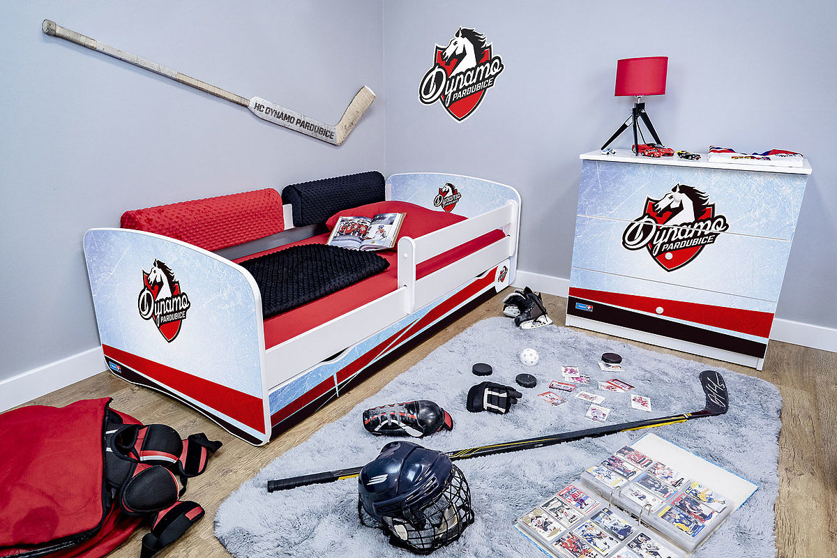 Hokejový izbičku v červeno-bielych farbách klubu HC Dynamo Pardubice poteší srdce najvernejšieho fanúšika nech je malý alebo veľký. Doprajte svojmu dieťaťu hokejovej prostredie v jeho vlastnom izbe. Dieťa tak môže zaspávať a prebúdzať sa do každého dňa s pocitom najvernejšieho fanúšika svojho klubu.