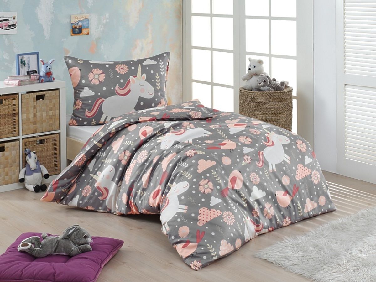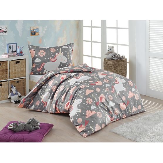 Nežné obliečky LILY sa postará o rozprávkové snívanie všetkých malých princezien. Jemným pastelovým farbám dominujú odtiene svetlo ružovej, tmavo malinovej, krémovo šedej a bielej farby. Obľúbený motív bájnych jednorožcov dopĺňajú ilustrácie obláčikov, kvietkov a roztomilých vtáčikov.