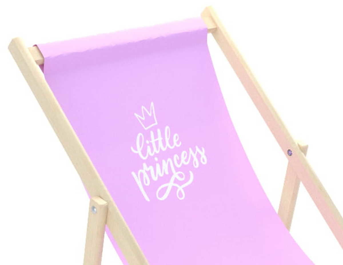 Krásne plážové lehátko s roztomilým nápisom Little princess . Látka má krásnu ružovú farbu. Detské plážové lehátko je skvelá alternatíva záhradnej stoličky či kresielka.