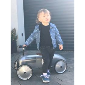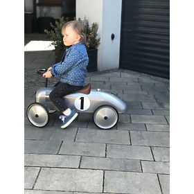 Autíčko má pevnú kovovú konštrukciu, volant, ktorým možno otáčať a plastovou polstrovanou sedačku pre maximálne pohodlie počas jazdy. Všetko je vyrobené v striebornej farbe v štýle 30-rokov. Hračka spoľahlivo nabáda dieťa k pohybu a rozvíja jeho pohybové zručnosti. Autíčko môžete vziať so sebou na prechádzku, ale vďaka pogumovaným kolesám chrániacim podlahy pred poškriabaním je vhodné aj do bytu.