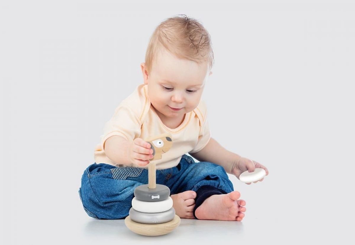 Hračka zábavným spôsobom rozvíja pohybovú koordináciu a zlepšuje motorické zručnosti dieťaťa. Batoľa sa najprv učia trafiť sa krúžkom na tyčku. Neskôr začína rozlišovať krúžky podľa veľkosti a navlieka ich tak, aby vytvorili pyramídu.