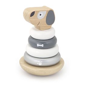 Úlohou dieťaťa je navliecť drevené krúžky na tyčku od najväčšieho k najmenšiemu. Podstavec má oválny tvar a počas hry sa ľahko kolíše, takže je úloha o niečo ťažšie.