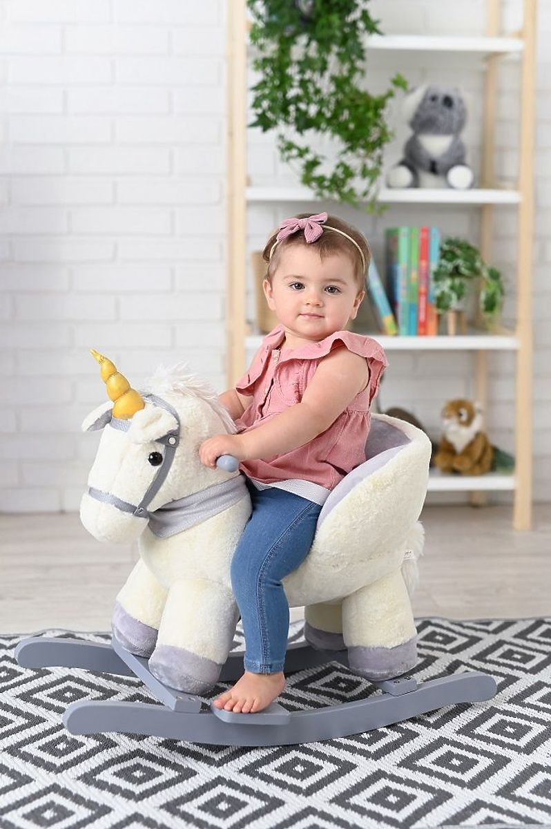 Čarovný hojdacia jednorožec so zlatým rohom vám prinesie veľa zábavy! Deti poteší zvukové efekty a rodičia ocenia jeho kvalitné spracovanie a moderný dizajn. Hračka je určená pre deti od 10. mesiaca, ktorým zabezpečí bezpečí vďaka opierke na sedadle a bezpečnostnému pásu.