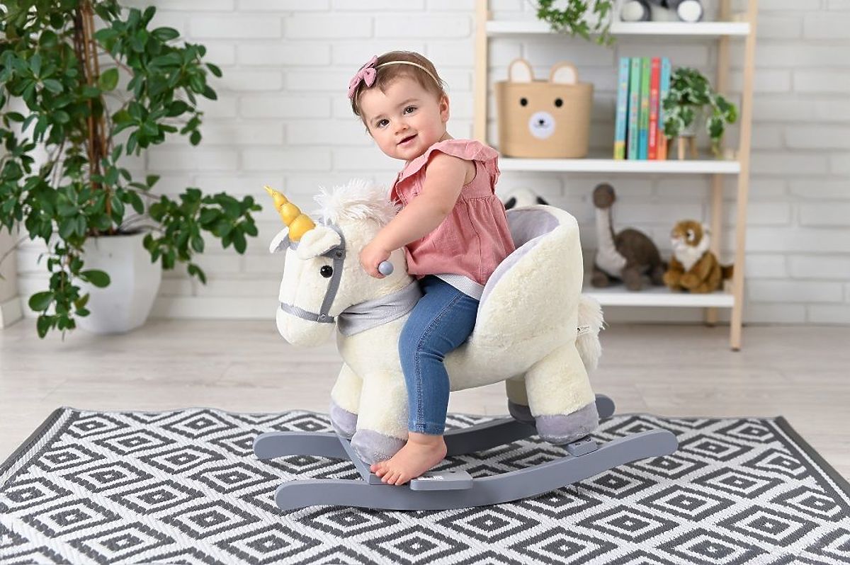 Hračka zábavným spôsobom rozvíja detskú predstavivosť a pohybovú koordináciu. Pri hojdanie musí dieťa koordinovať pohyby tela s hojdacím jednorožcom, takže precvičuje svoju rovnováhu.