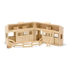 Súčasťou stajne sú boxy s otváracími dvierkami a posuvné predné dvere. Pod strechou je pôda s otvormi, cez ktoré môžu byť balíky slamy vyhadzovať priamo stajne. Balíky môžete zniesť dole tiež po rebríku. Celú stajňa možno v polovici otvoriť, takže si môžete hrať aj vo vnútri. Oplotenie sa skvele osvedčí ako výbeh pre kone.