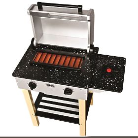 Hračka je vernou kópiu ozajstného záhradného grilu - spínača pri otáčaní cvakajú ako skutočné, na rošte je dostatok miesta pre všetky potraviny, z bočnej strany sa nachádza dodatočný horák a pod spodkom je police na riad a príslušenstvo. Gril má tiež veko k priklopenie.