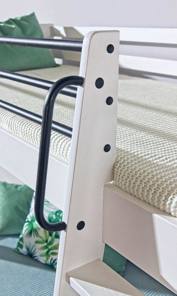 Biela poschodová posteľ MAX je vhodná pre dve deti. Výhodou je šikmý rebrík s madlami, ktorý uľahčuje deťom výstup na horné lôžko. Sami si zvolíte na ktorú stranu rebrík umiestnite. Ložná plocha oboch lôžok je 190x80 cm.