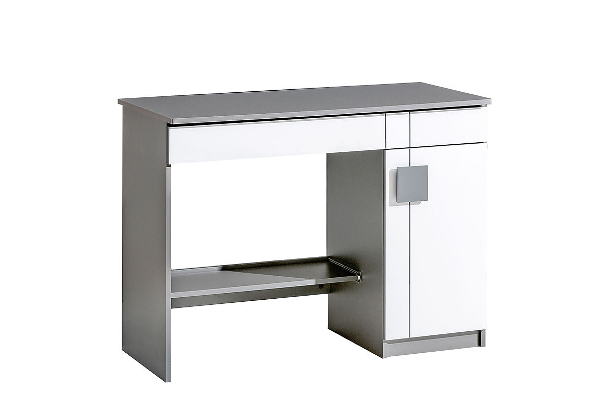 Moderný písací stôl Gumi z laminátu je vhodný do detskej izby pre chlapcov aj dievčatá. Farebná kombinácia bielej a antracitovo šedej je moderná. Pod hornou doskou stola sa nachádza podlhovastý šuplík.