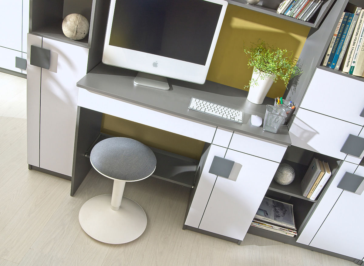Moderný písací stôl Gumi z laminátu je vhodný do detskej izby pre chlapcov aj dievčatá. Farebná kombinácia bielej a antracitovo šedej je moderná. Pod hornou .. viac