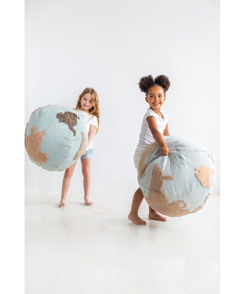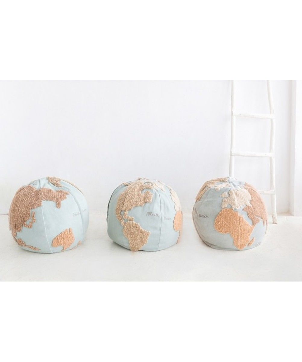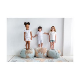 Sedák (puf) v podobe zemegule je mäkučkou alternatívou kresielok a pohoviek. Úžasne sa hodí do detskej izbičky na sedenie alebo ako opierka za chrbát. Dizajn mapy sveta v prírodných odtieňoch na bledomodrom podkladu sa hodí do izbičiek všetkých farieb a štýlov.