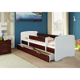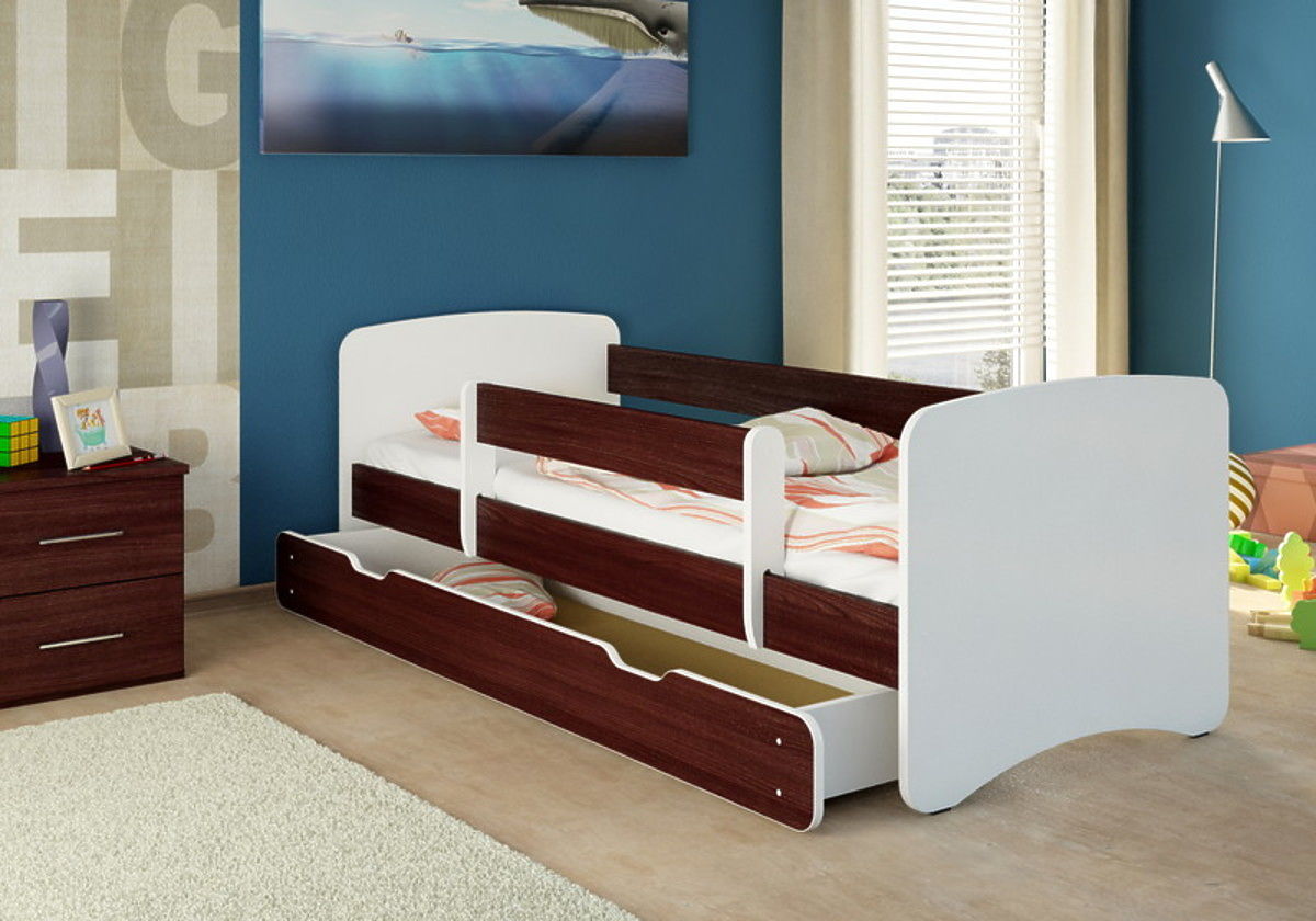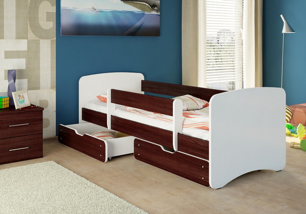 Krásna detská posteľ Nico s bočnicami vo farbe wenge. Použité tlačiarenské farby sú ekologické a navyše zaistené laminátovým profilom tak, aby nedochádzalo k vyblednutiu a opotrebovaniu farby.