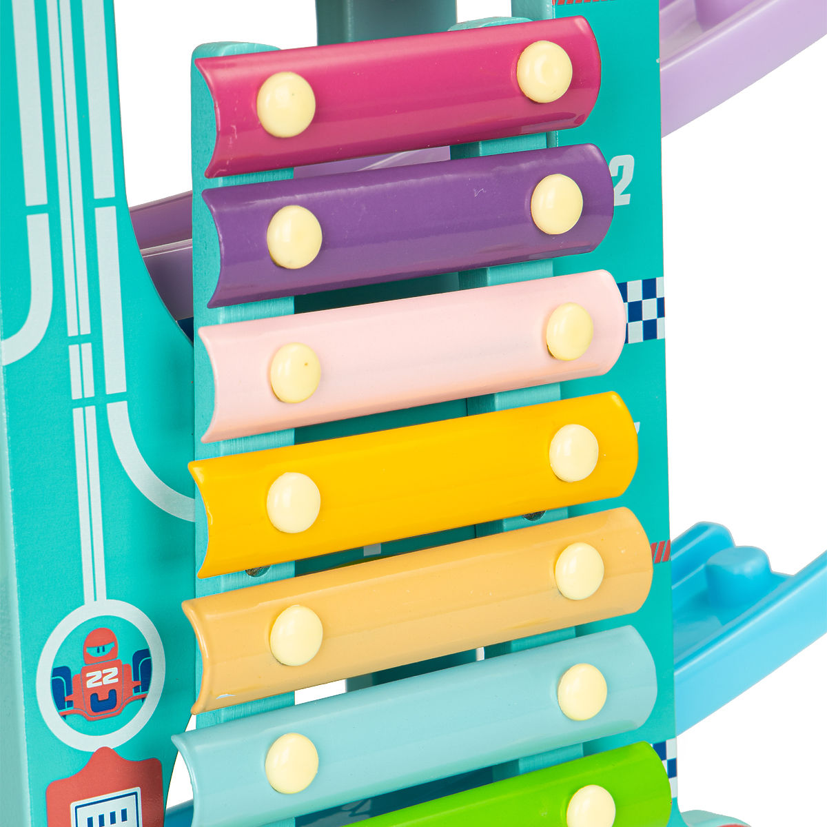 Klouzačka skládající se ze 4 pater kaskádových skluzavek a dřevěných autíček bude originálním dárkem pro každého malého fanouška motorových vozidel. Umístěte autíčko na vrchol trati a pozorujte, jak sjíždí jednotlivá patra až dojede do cíle.