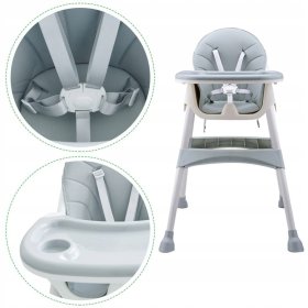 Multifunkčné, bezpečná a zároveň veľmi pohodlná jedálenská stolička (2v1) v šedobielom prevedení. Stolička umožní vašim deťom stolovať spoločne s vami a tým sa učiť správnym stravovacím návykom od prvých mesiacov.