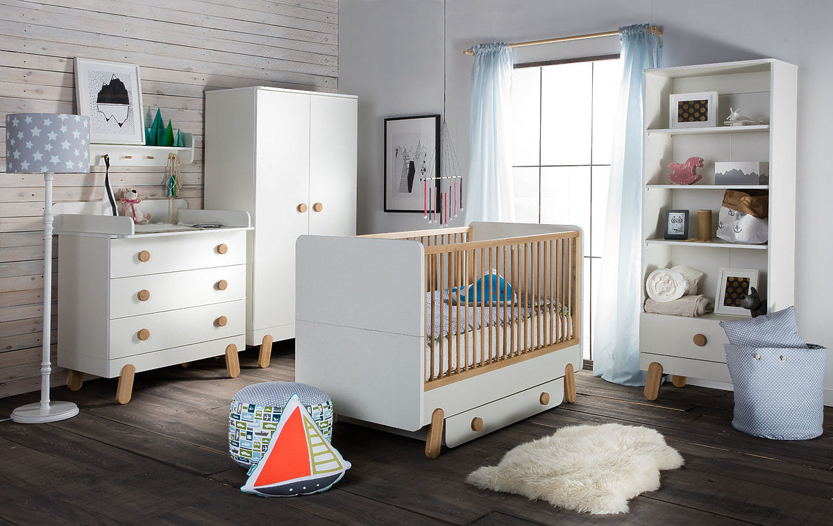 Štýlová šatníková skriňa Ida sa vďaka kombinácii bielej farby s prírodnými prvkami skvele hodí ako do dievčenskej tak i chlapčenskej izby.