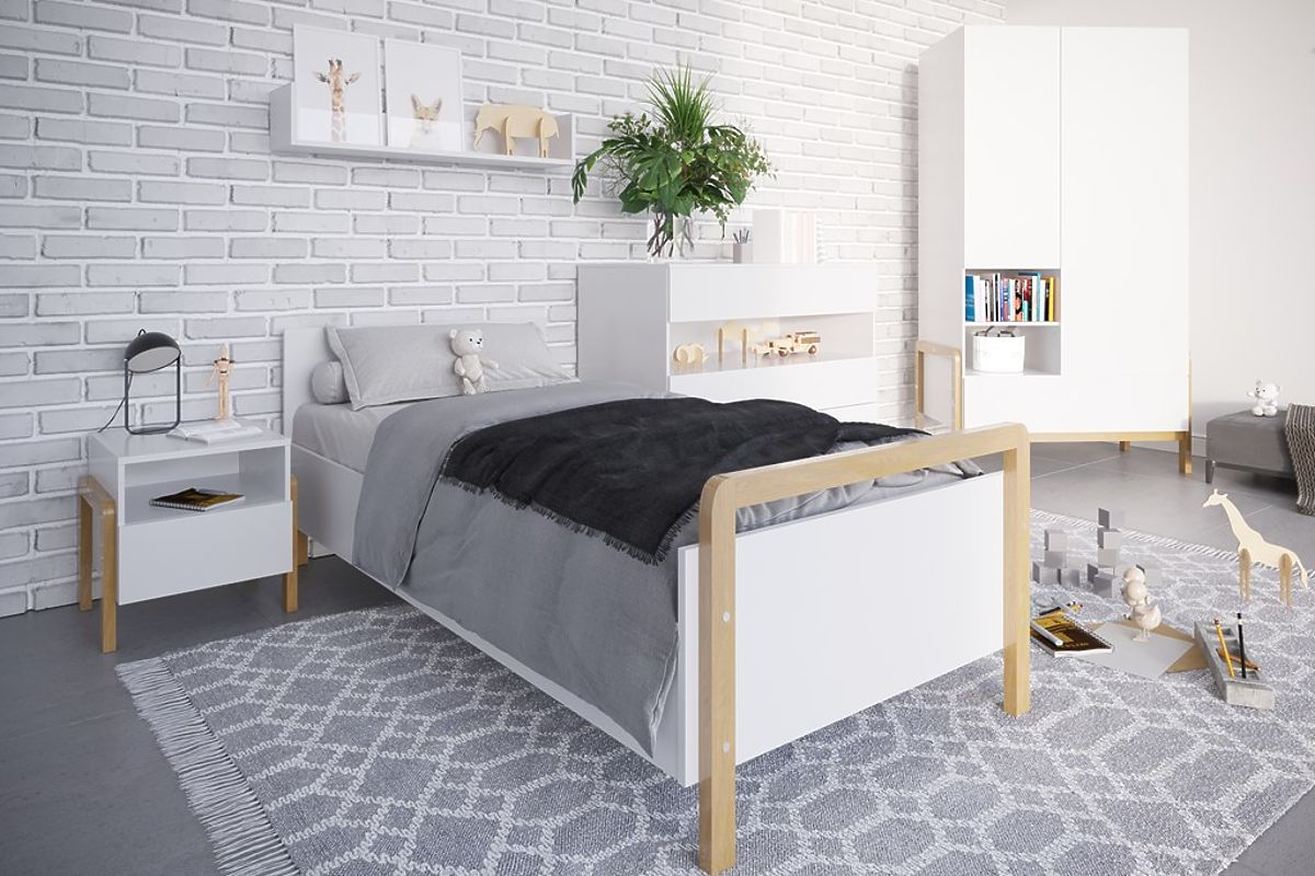 Detská posteľ Viktor v škandinávskom štýle dodá šmrnc každej izbičke. Biela posteľ s drevenými prvkami s rozmermi 180 x 80 cm ponúka kombináciu pohodlného a bezpečného spánku.