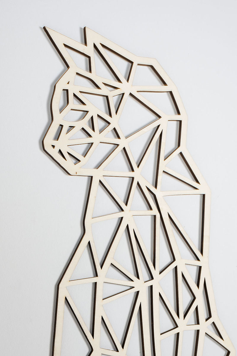 Drevený geometrický obraz v tvare Mačky. Závesná dekorácia z preglejky je vhodná do detskej izby v škandinávskom štýle. Vyberte si z niekoľkých variantov .. viac