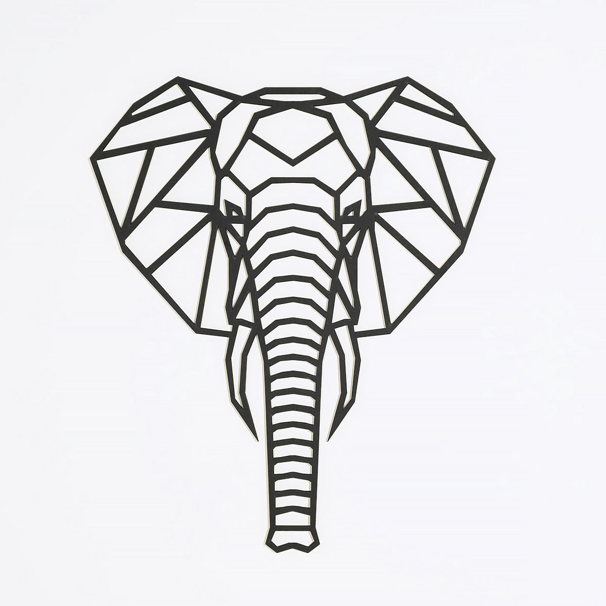 Drevený geometrický obraz v tvare Slona. Závesná dekorácia z preglejky je vhodná do detskej izby v škandinávskom štýle.